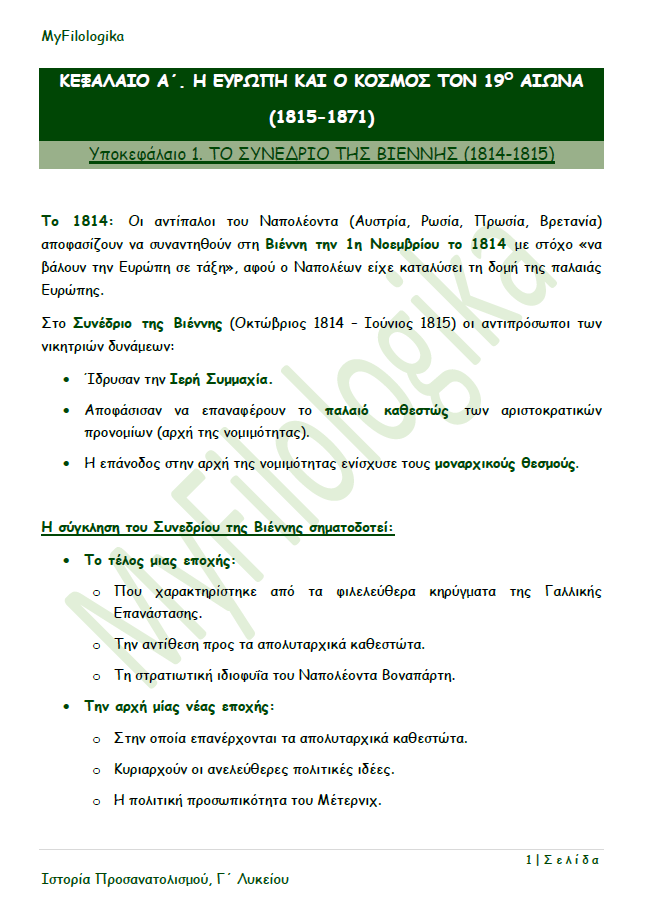 Κεφάλαιο Α΄ - Υποκεφάλαιο 1. Το Συνέδριο της Βιέννης
