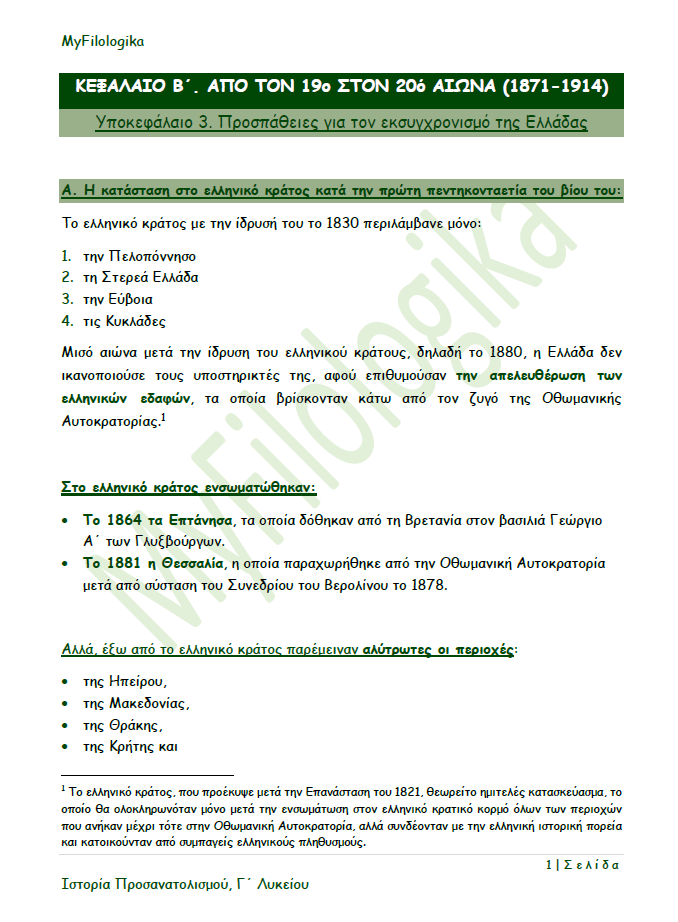 Κεφάλαιο Β΄ - Υποκεφάλαιο 2.3. Οι προσπάθειες για εκσυγχρονισμό της Ελλάδας