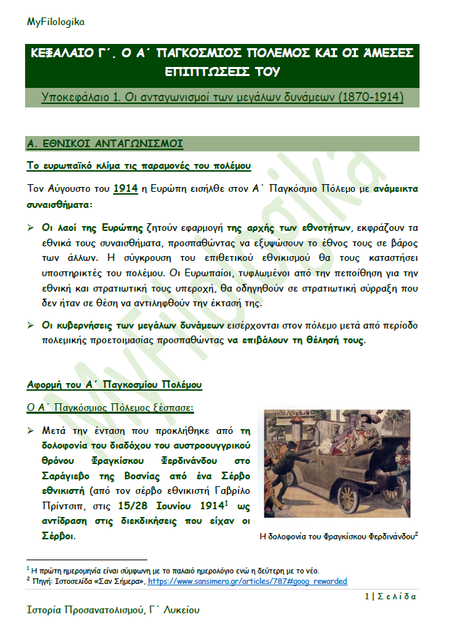 Κεφάλαιο Γ΄ - Υποκεφάλαιο 3.1. Οι ανταγωνισμοί των Μεγάλων Δυνάμεων