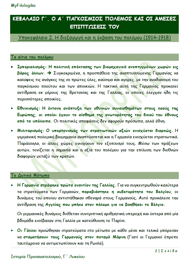 Κεφάλαιο Γ΄ - Υποκεφάλαιο 3.2. Η διεξαγωγή και η έκβαση του πολέμου (1914-1918)