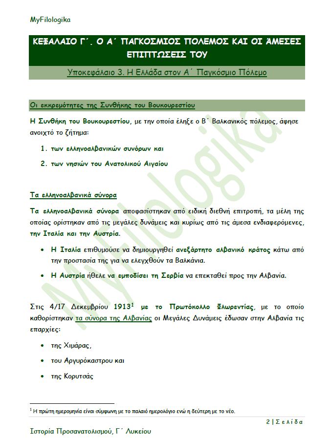Κεφάλαιο Γ΄ - Υποκεφάλαιο 3.3. Η Ελλάδα στον Α΄ Παγκόσμιο Πόλεμο